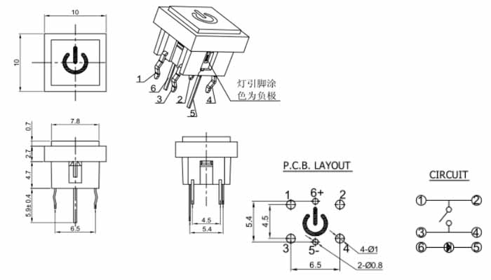 带灯轻触开关TS1-1B-2AR-3A-2C