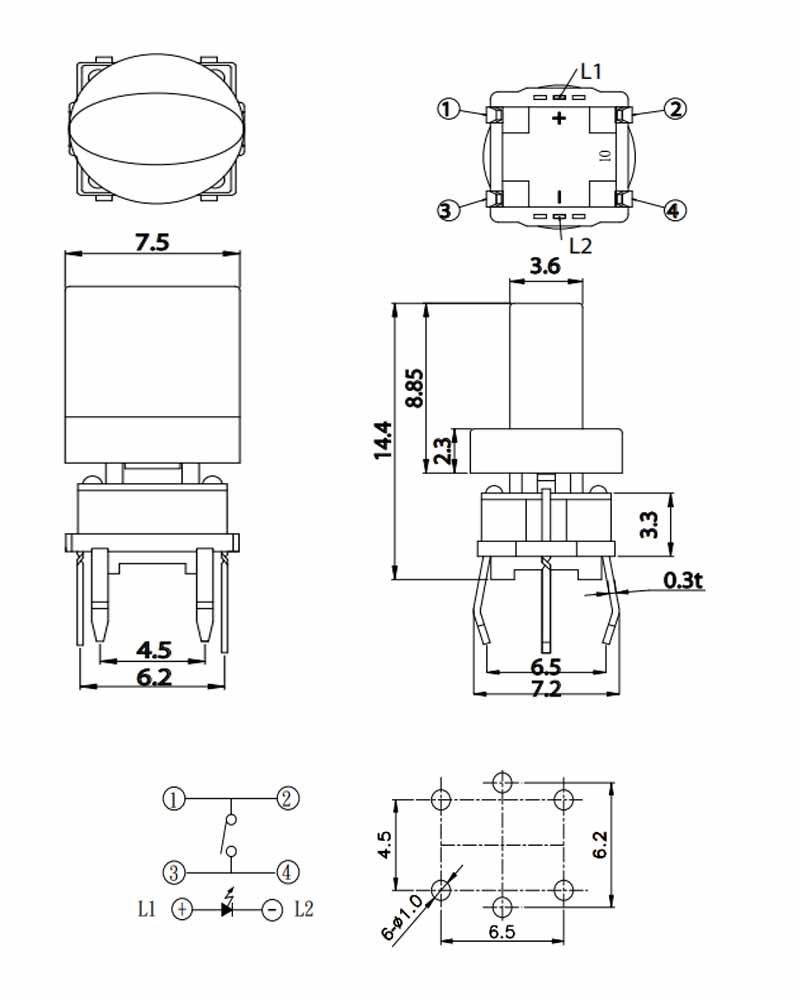 • 侧按90度带灯轻触按键开关 侧按90度带灯轻触按键开关