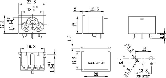 IEC插座系列,小型八字插座,米老鼠插座 ,梅花座等多种规格,产品通过UL VDE CCC CB等认证,常见于家用仪器设备,小家电等